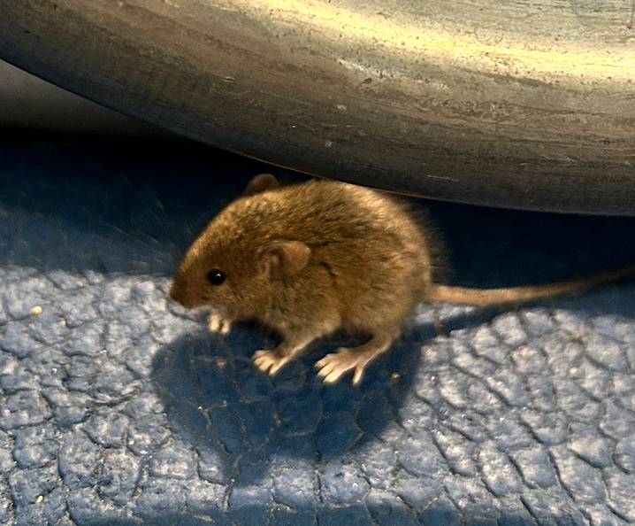A mouse found in the field house.